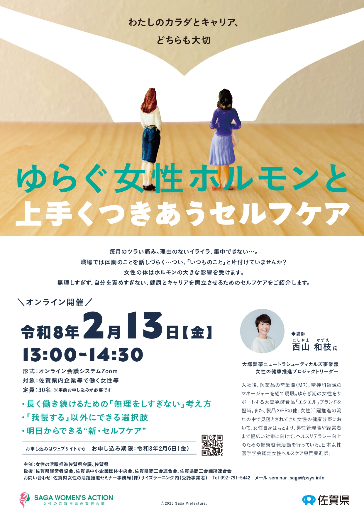 佐賀県働く女性向けセミナー≪ゆらぐ女性ホルモンと上手くつきあうセルフケアセミナーのご案内≫募集中!